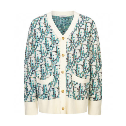 【Exclusive supply】 CD 25SS all over print jacquard sweater cardigan Purchased for 15,500 from the national specialty, the yarn is made of fixed-dyed blue, beige, yellow, and brown yarn, 100% wool yarn is twisted into strands, the imported 7-needle jacquard craft yarn is clear and textured, with obvious wool fiber on the surface, special hemless design, perfect with macaron color upper body, full body jacquard, buttons with natural open-molded logo engraved horn buttons, each letter is in position, distinguishing the wrong version on the market. Size:S-M-L