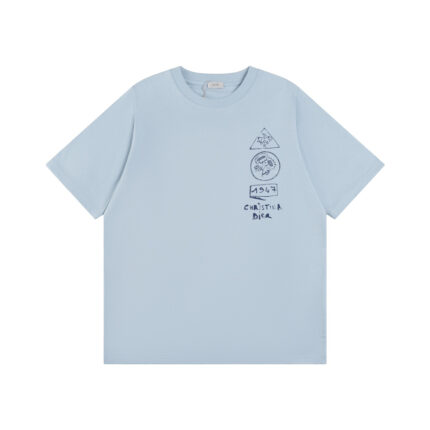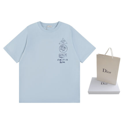 [Top version. Official website quality] DIOR Dior 25 new dream house and smart tree shadow short-sleeved T-shirt Exclusively customized from the original board, the 280g 32-count double yarn pure cotton fabric has a very soft and comfortable texture. It is 100% different from the top fabrics in the market (does not shrink, deform, or pill). Matched with 320g 1×1 thread (fabric threads are dyed in the same vat, no color difference and not easy to deform) Original version, original customized accessories, collar label, wash mark, hang tag, packaging (perfect details) Style number: 8838# Color: white blue Size: XS S M L