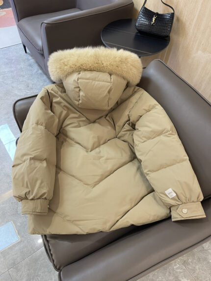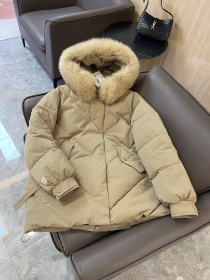 9227# max mara oversized fox fur collar 90% white goose down down jacket apricot black beige SMLXL