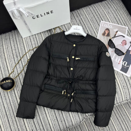 Guangzhou high version Moncler early autumn and winter series new waist drawstring round neck down jacket, 4 pocket design, light and thin, good fit, iconic armband, 90 velvet filling 0123 code