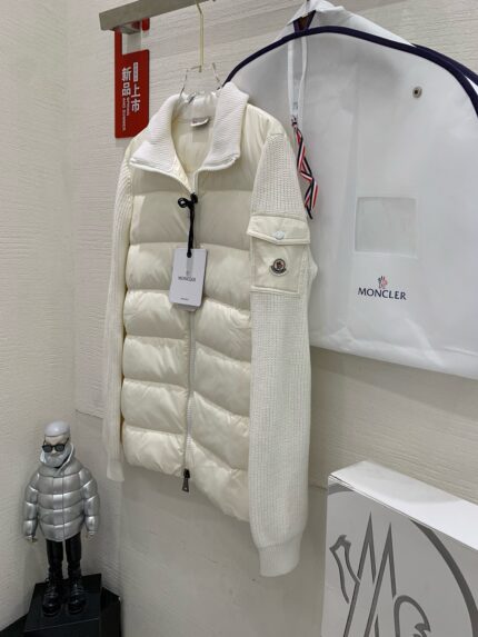 Guangzhou high version Moncler black quilted down jacket Paneled down-filled quilted nylon taffeta and rib-knit virgin wool jacket. ·Stand collar ·Two-way zipper closure ·Seamed pockets ·Logo patch and patch pocket on sleeves ·Unlined Supplier color: black Filling: 90% down, 10% feathers. Body: 100% virgin wool. Subject 2: 100% polyamide. Trim: 100% polyamide. Made in Moldova.