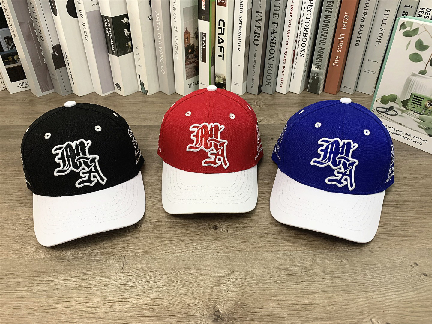 Be the first to review “DM 9868# #AMIRI color-blocking baseball cap hard-top peaked cap color-blocking letter embroidery hat showing face small casual hat# adjustable Color: red black blue”