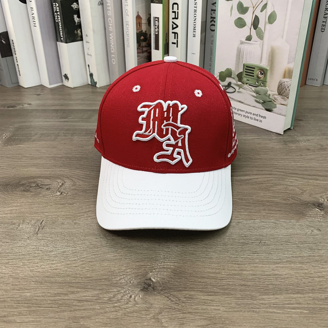 DM 9868# #AMIRI color-blocking baseball cap hard-top peaked cap color-blocking letter embroidery hat showing face small casual hat# adjustable Color: red black blue