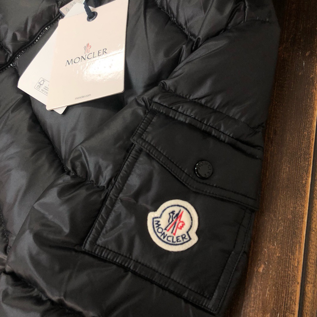 Guangzhou high version Moncler women’s Glements short down jacket Made from recycled shiny bench saison Recycled bench saison lining Down-filled hood Inside front flap Zipper closure Snap-stud chest pocket Adjustable cuffs Polyamide fiber 100%; Placket method: zipper Color: black apricot Number of yards: 1-2-3-4