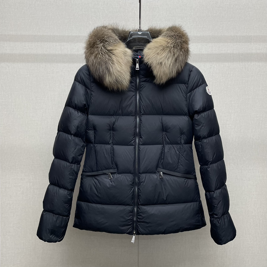 Guangzhou high version Moner waisted big fur collar short down jacket Mone~r’s fashionable waisted fur collar down jacket features nylon Leger sculptural line design, down filling and signature Boudin quil seams. Stretch straps at the waist give you a slim and feminine look. A zipper closure with dual zipper pulls and a removable frost fox edge on the hood let you customize the style to suit your climate and needs. The “paper down jacket” made by Heavy Industry will become a new member of the thin style in autumn and winter. The material has a glossy feel, is very light, and has a particularly delicate feel. Wearing it on the body feels lighter and warmer. The fine and smooth craftsmanship ensures the silhouette of the clothes. The classic down hood and detachable fox fur collar are fluffy, soft and textured. You can intuitively feel its high quality with the naked eye. The fine and visible fur can easily create a small V-face. The windproof pockets and back waistband design make the entire down jacket slimmer and more fashionable! Color: black, military green Size: 1-2-3-4..