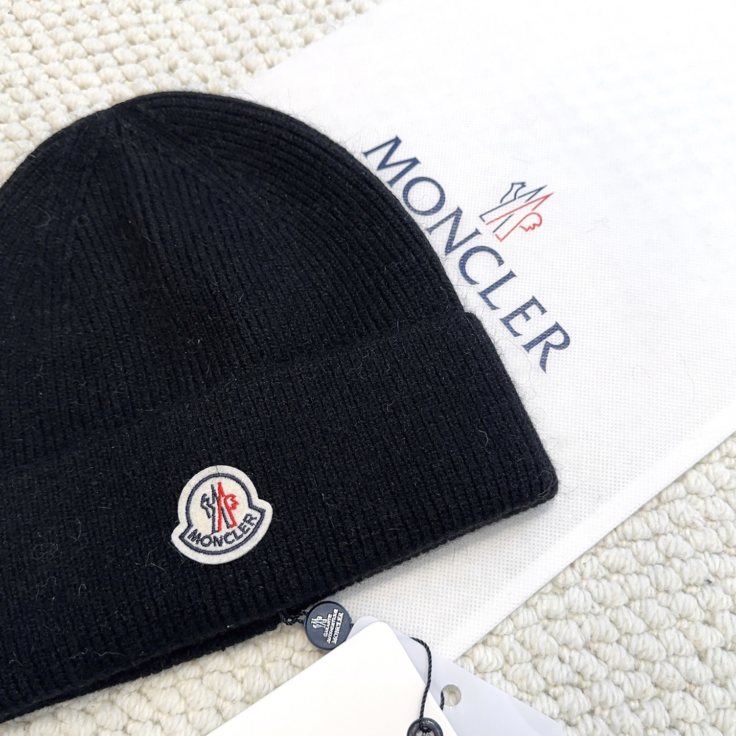 P60 with dust bag, high version Moner 💥Official website classic knitted hat, original item. Very soft and skin-friendly, very elastic 💓 Textured and very versatile style ~ Warm cashmere woolen hat, one size fits all and elastic ~ Unisex, can be worn by any head size. Super quality, highly recommended